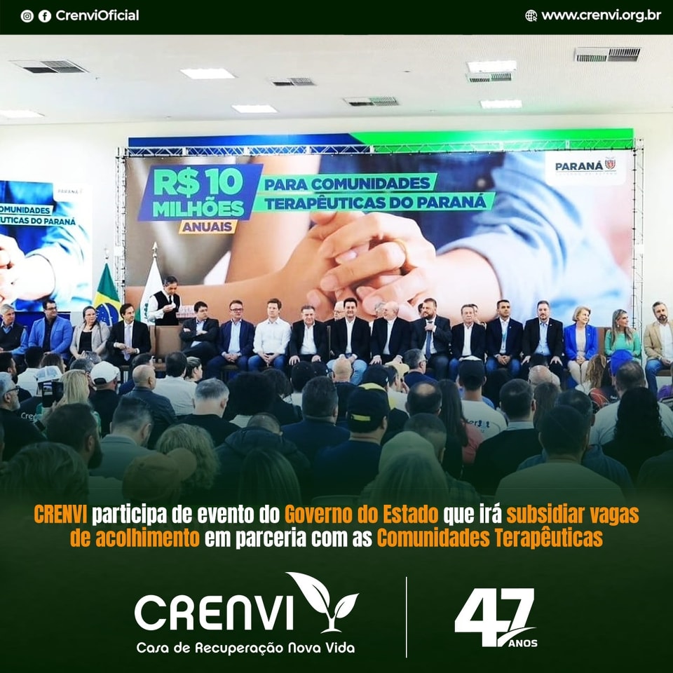 No dia 25 de outubro, representada pelo seu diretor e responsável técnico @thiagomassolin, marcamos presença no Evento de anúncio do Governador do Paraná Ratinho Junior sobre o lançamento dos 10 milhões de reais anuais para as contratações de vagas de acolhimento nas Comunidades Terapêuticas do Paraná!